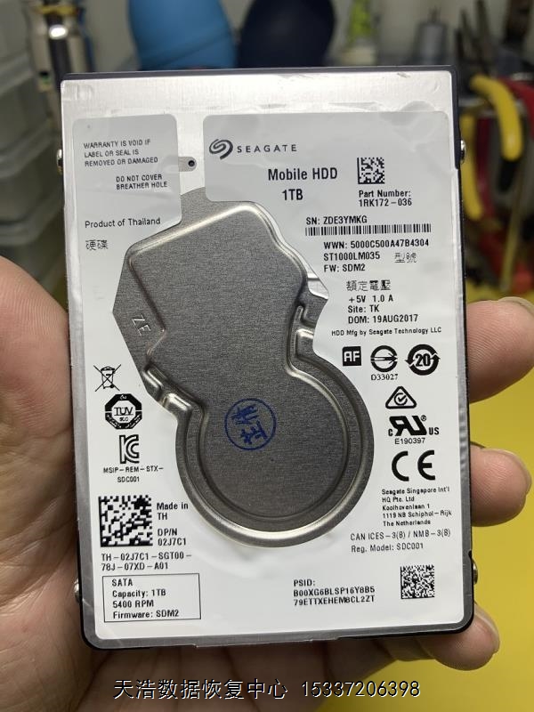 硬盘型号:ST1000LM035-1RK172 SN:ZDE3YMKG FW:SDM2 电路板号:100809471