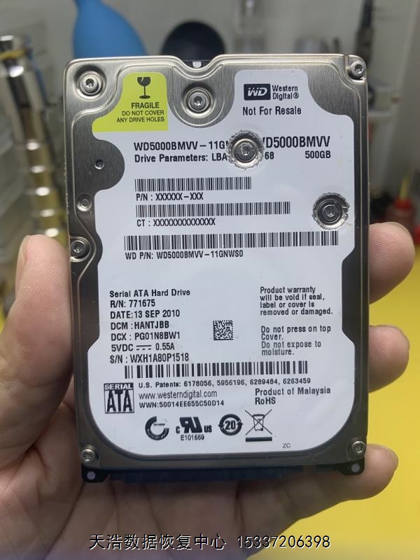 硬盘型号:WD5000BMVV-11GNWS0 SN:WXH1A80P1518 FW:14003R 电路板号:701675-004