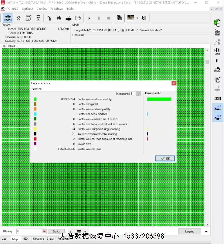 - 东芝1t硬盘开盘恢复数据成功…