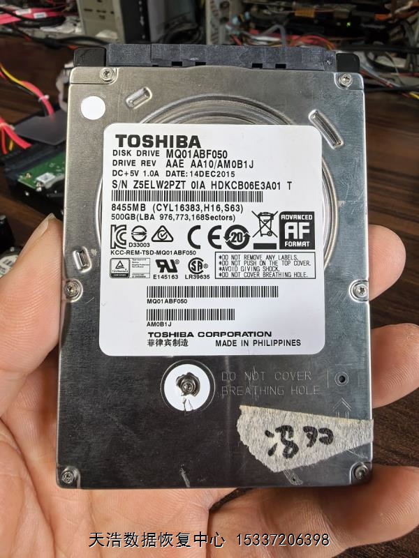 硬盘型号:TOSHIBA MQ01ABF050 SN:Z5ELW2PZT FW:JAM0B1J12 电路板号:G003235C