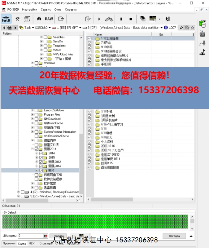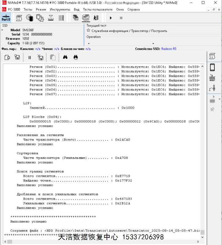 解决方案:收到硬盘后,我们使用专业的SSD恢复工具ACE PC-3000 Portable 3 ,短接通电就绪后,虚拟重建编译器,再用PC3000 DE虚拟镜像,最后成功恢复出客户硬盘内的大部分重要数据!