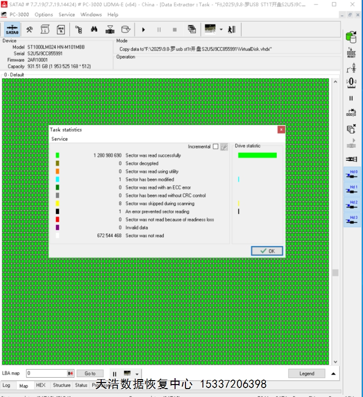 希捷1t原装移动硬盘开盘恢复数据成功案例