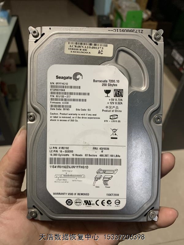 硬盘型号:ST3250310AS SN:6RYFHG1D FW:4.CCB 电路板号:100468303
