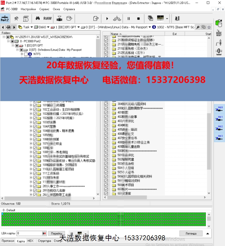 解决方案:收到硬盘后,在无尘环境更换兼容的磁头,原ROM解锁,原始usb板飞线改SATA,接到专业数据恢复工具ACE PC-3000 Portable 3上,通电硬盘认盘,备份好关键固件,做好前期处理工作后,DE分头镜像,最后客户硬盘内的重要数据基本完整恢复!