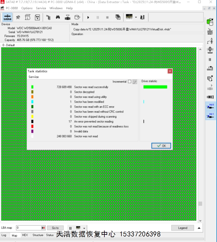 WD5000AAKX-001CA0开盘恢复数据成功案例