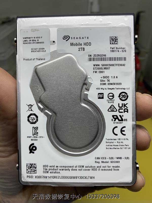 硬盘型号:ST2000LM007-1R8174 SN:ZDZRGD96 FW:EB01 电路板号:100835923
