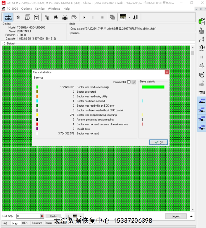 - 东芝1T台盘开盘数据恢复成功…