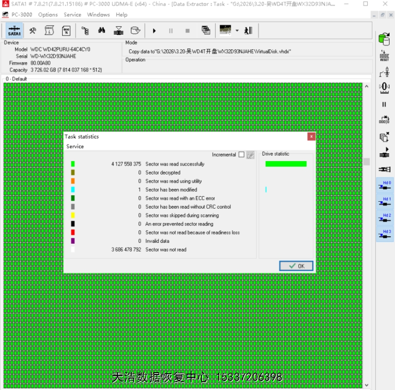 - 西数4T紫盘开盘恢复数据成功…